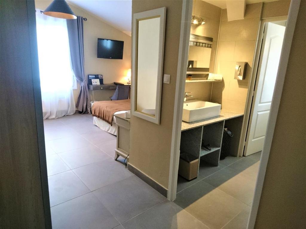 La salle de bains privative constitue un véritable espace de bien-être. Elle est équipée au choix d’une douche à l’italienne, d’une baignoire ou d’une douche classique, ainsi que d’un sèche-cheveux et d’articles de toilette offerts. Chaque détail a été pensé pour offrir un moment de relaxation, dans un cadre fonctionnel et soigné.