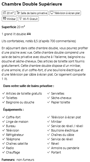 Avec une superficie de 20 m², la chambre a été soigneusement aménagée pour optimiser l’espace tout en conservant une atmosphère chaleureuse et moderne. Le grand lit double, particulièrement apprécié pour son confort, a obtenu une excellente note de 8,5 selon plus de 700 commentaires clients, garantissant des nuits reposantes après une journée d’exploration ou de détente. La décoration, sobre et élégante, met en valeur des tons apaisants qui s’harmonisent parfaitement avec l’environnement naturel de Cilaos.